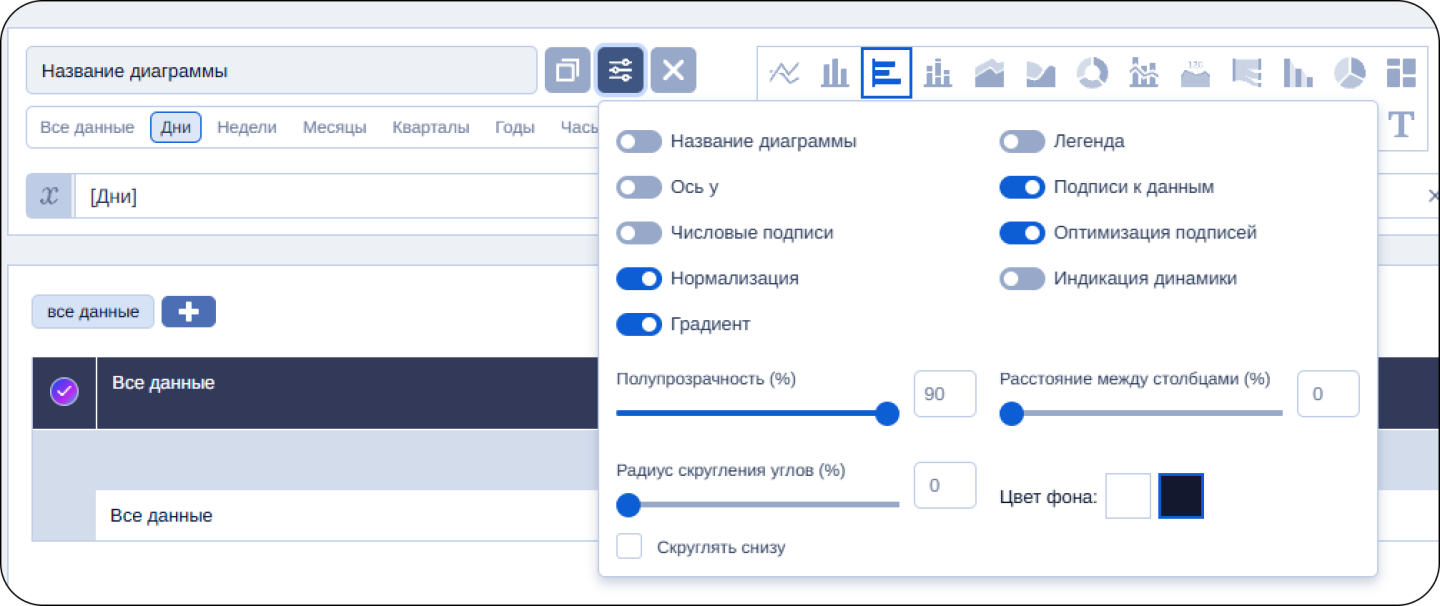 Дополнительные возможности горизонтальной столбчатой диаграммы