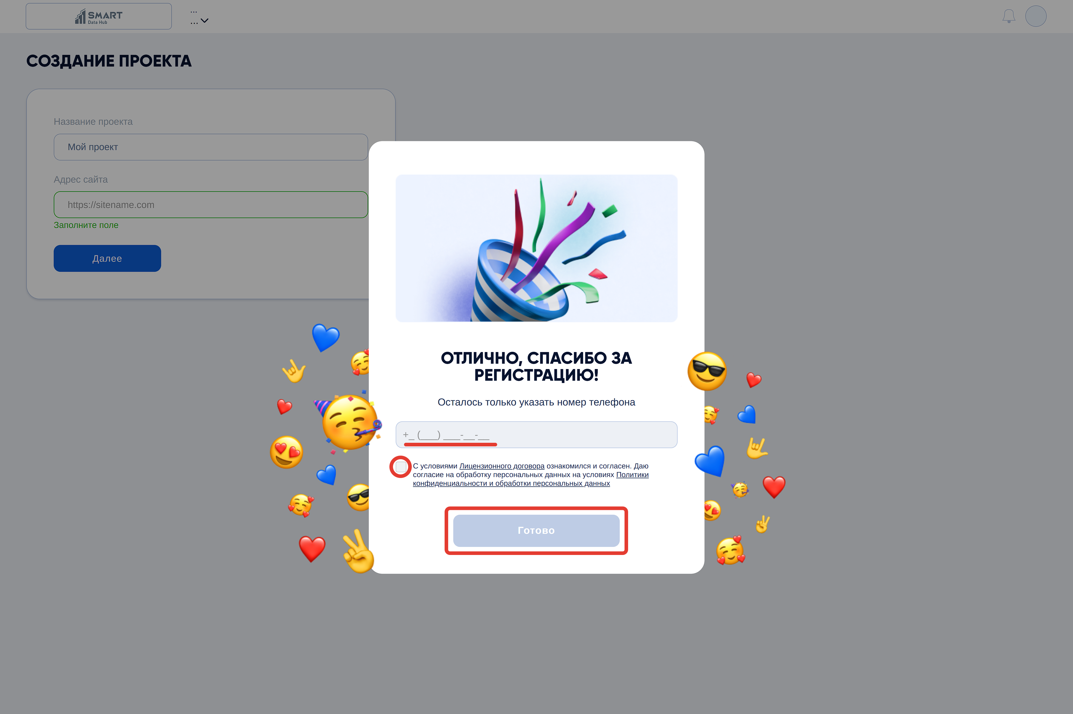 Поздравляем! 🥳 На этом регистрация в сервисе Smart Data Hub завершена.