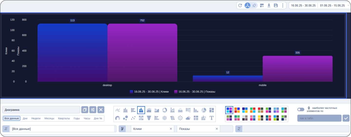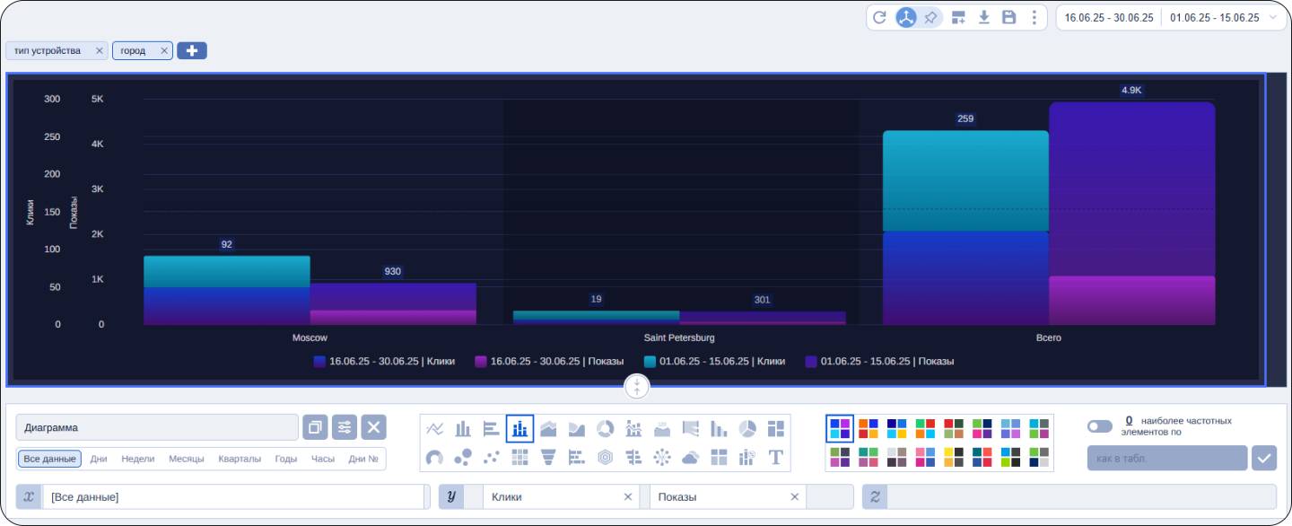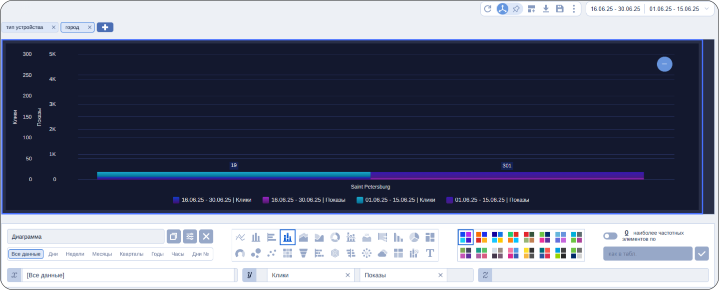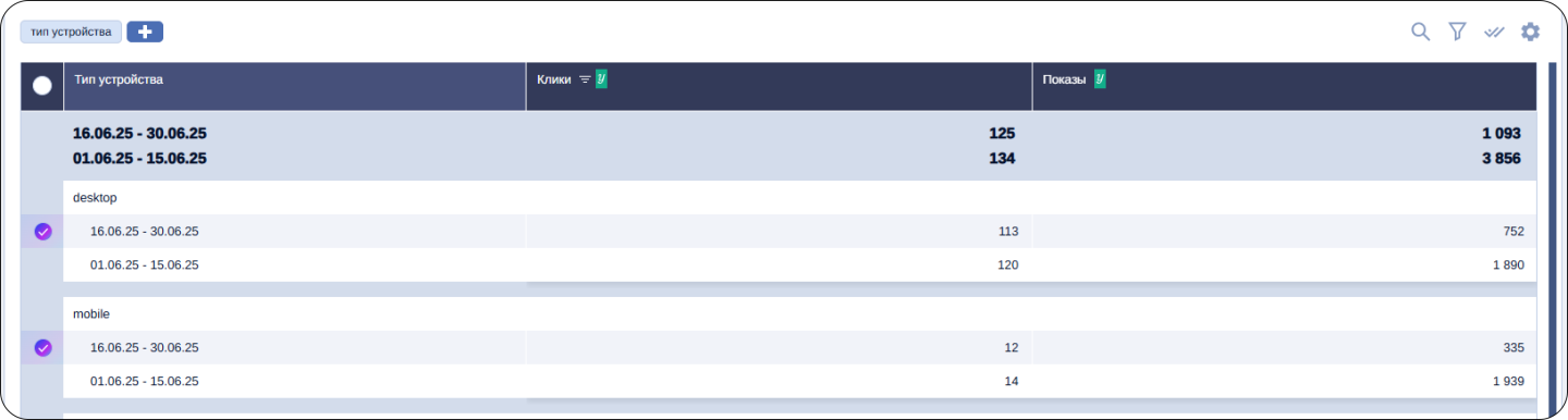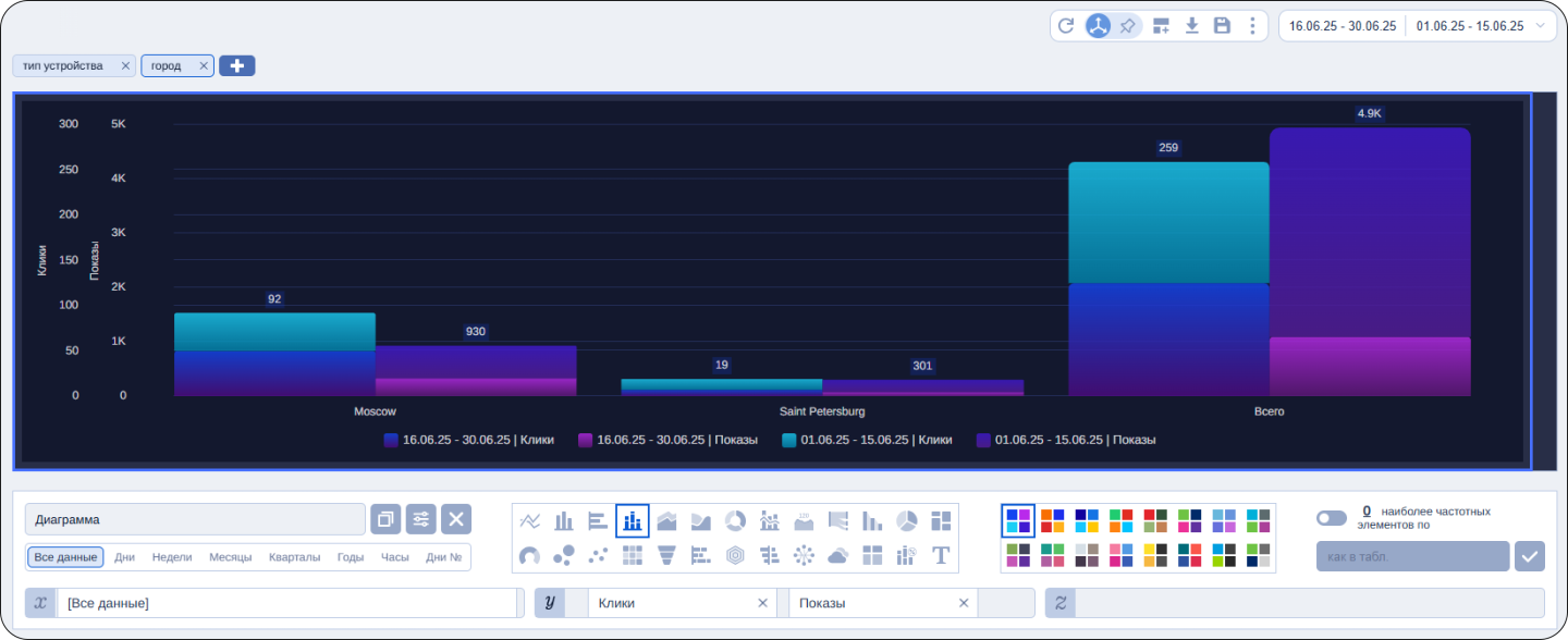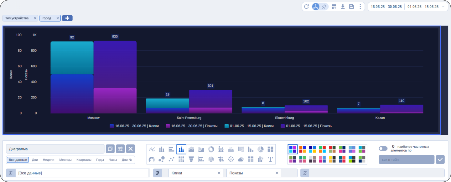 Выбранные диапазоны на каскадной вложенностиВизуализация со сравнением одного периода на разных устройствах